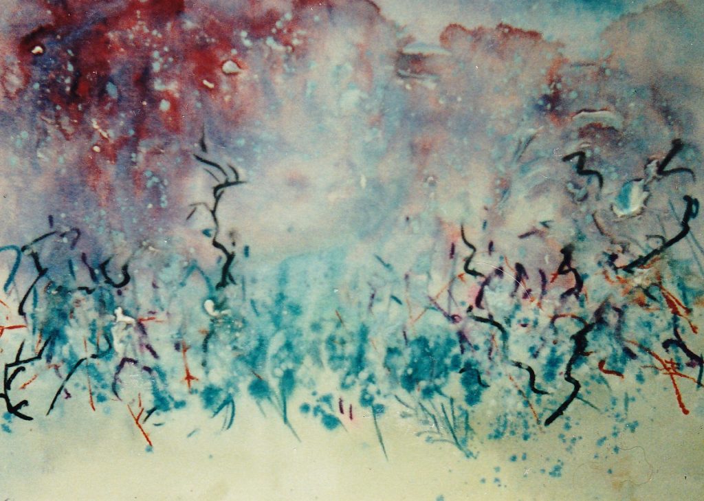 I did dabble a bit with brushes at weekends but to no avail. However, I thought continually about art and I’m glad I did because after more than twenty years of, in the practical sense, shilly-shallying around the subject I managed to conflate my thoughts with certain lines of poetry. These lines were not from poems per se but from song lyrics describing the microcosm of the Irish landscape. I had been singing these songs for years and always thought that some of them were very “painterly” indeed. It was time to look seriously at these lines and produce some landscapes that were, perhaps, less representative and more impressionistic. If I used an intensification of colour in these paintings they could even be termed “expressionistic”, and if I deployed the techniques of Jackson Pollock and Marc Rothko I could be leaning towards the abstract in some of them. In 1993 it all happened. My first one-man shadow opened in the Duke Gallery of Dublin in October of that year.