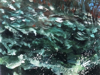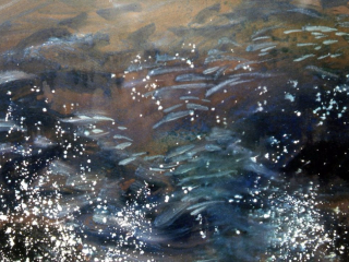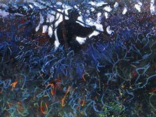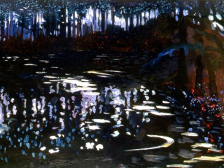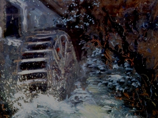 We begin at the source. Schubert’s rippling musical accompaniments to the songs suggest the flowing of water and provide many visual images for the paintings. Eventually we arrive at the mill itself and the “femme fatale”. However, her infatuation with the dark figure of “The Hunter” spells disaster for the young man.