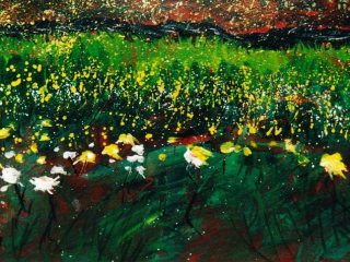 The intention of Dietrich Bohnhorst (film-maker) and Seoirse Ó Dochartaigh (painter) in their video  is to feast the eyes with strong visual images mustering up as much colour and kinetic energy as possible. The paintings attempt to capture the mood of each of the twenty songs – from the opening fresh greens and blues of “Wandering” to the dark, shadowy loneliness of the final song, “Lullaby of the Brook”.