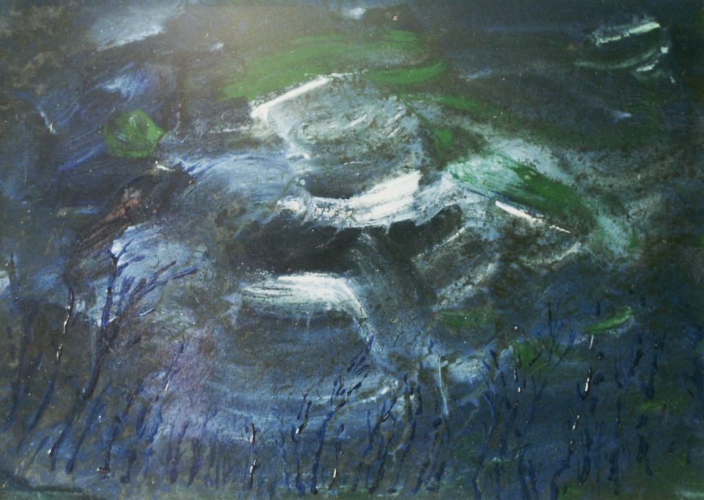 Seoirse Ó Dochartaigh, from Donegal Town, likes the challenge of new ideas and new approaches, such as in the current series “Nocturne”. Here he has taken the complete piano Nocturnes of Field and produced a series of 18 pictures depicting each piano piece as a kind of vignette, or small-scale landscape. They could be described perhaps as “little pictures of the night” The aim was to capture the mood of each of these beautiful and evocative seoda ceoil and aspire to render them in paint. This was certainly in evidence in the Abbey Mill Wheel exhibition where the essence of the music was recreated as if by magic by an artist of vision.